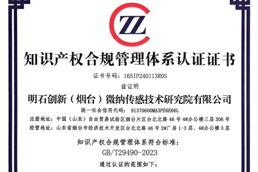 明石微納通過“知識產(chǎn)權(quán)管理體系”認證