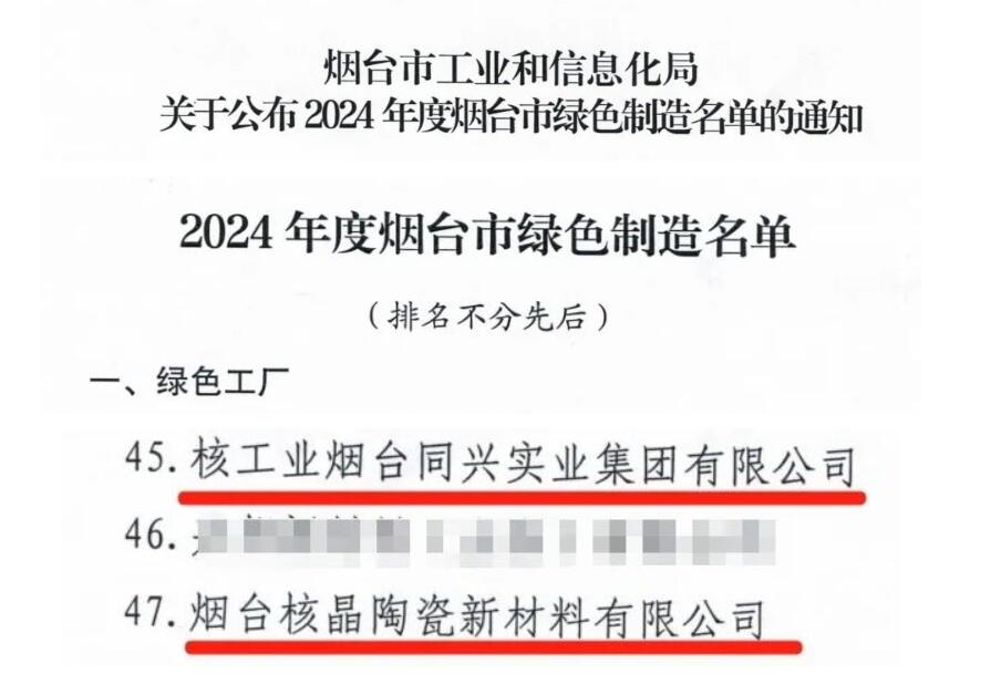 明石創(chuàng)新旗下同興實業(yè)及核晶陶瓷獲評“綠色工廠”
