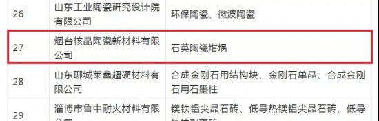 核晶陶瓷入選“2019年度山東新材料領(lǐng)軍企業(yè)”